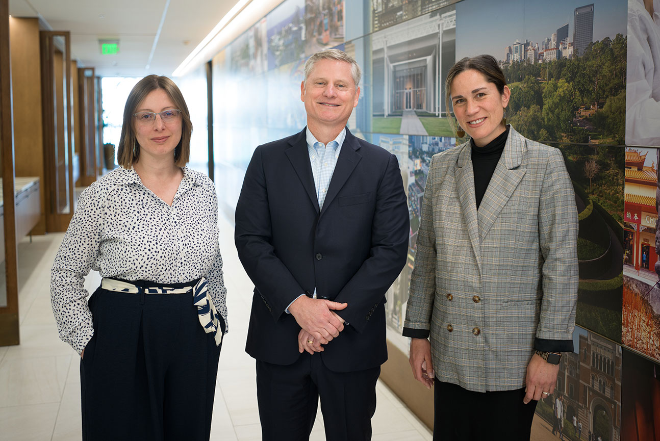 Jon Creyts and Bryan Fisher of RMI are joined by board member Jessica Uhl on a visit to a hydrogen production facility in Houston in 2023.