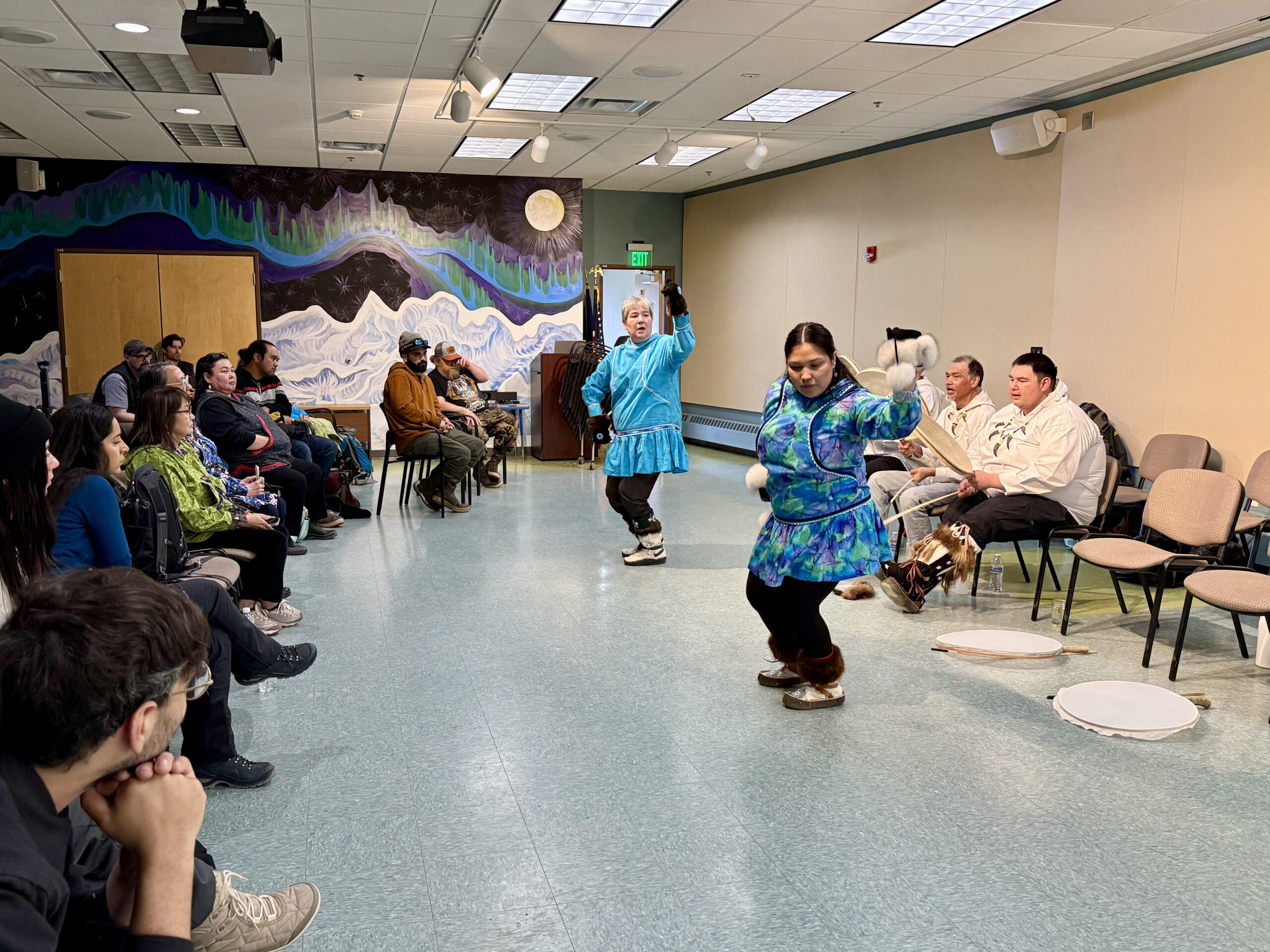 Fellows take in a performance by Qikiqtagruq Northern Lights Dancers. Iñupiaq dance is a way of connecting with ancestors and sharing cultural knowledge and traditions.