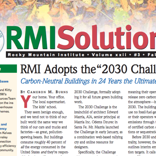 From 1999 through 2019, Solutions Journal documented RMI’s growing impact, focusing on the people, programs, and innovations driving the clean energy revolution.