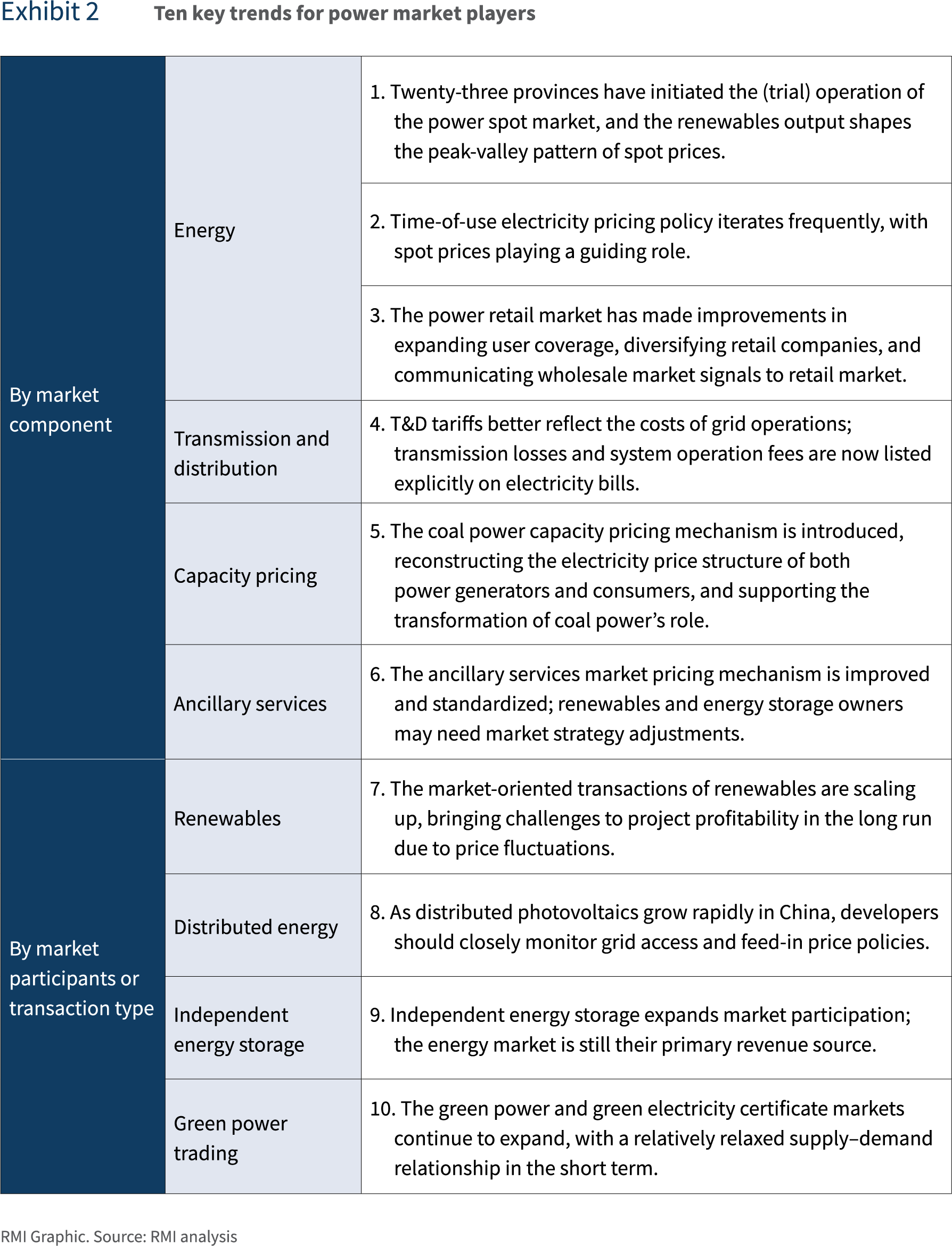 Building on the foundation laid by previous reforms, China continues to refine its approach to power market development. At the national level, the past year has witnessed notable progress in key components in the electricity market and pricing system, including transmission and distribution tariffs, the power spot market, power capacity price, and ancillary services markets, favoring the New Power System construction and renewable energy access. These updates profoundly influence the composition of industrial and commercial electricity prices and set a refined price formation mechanism.