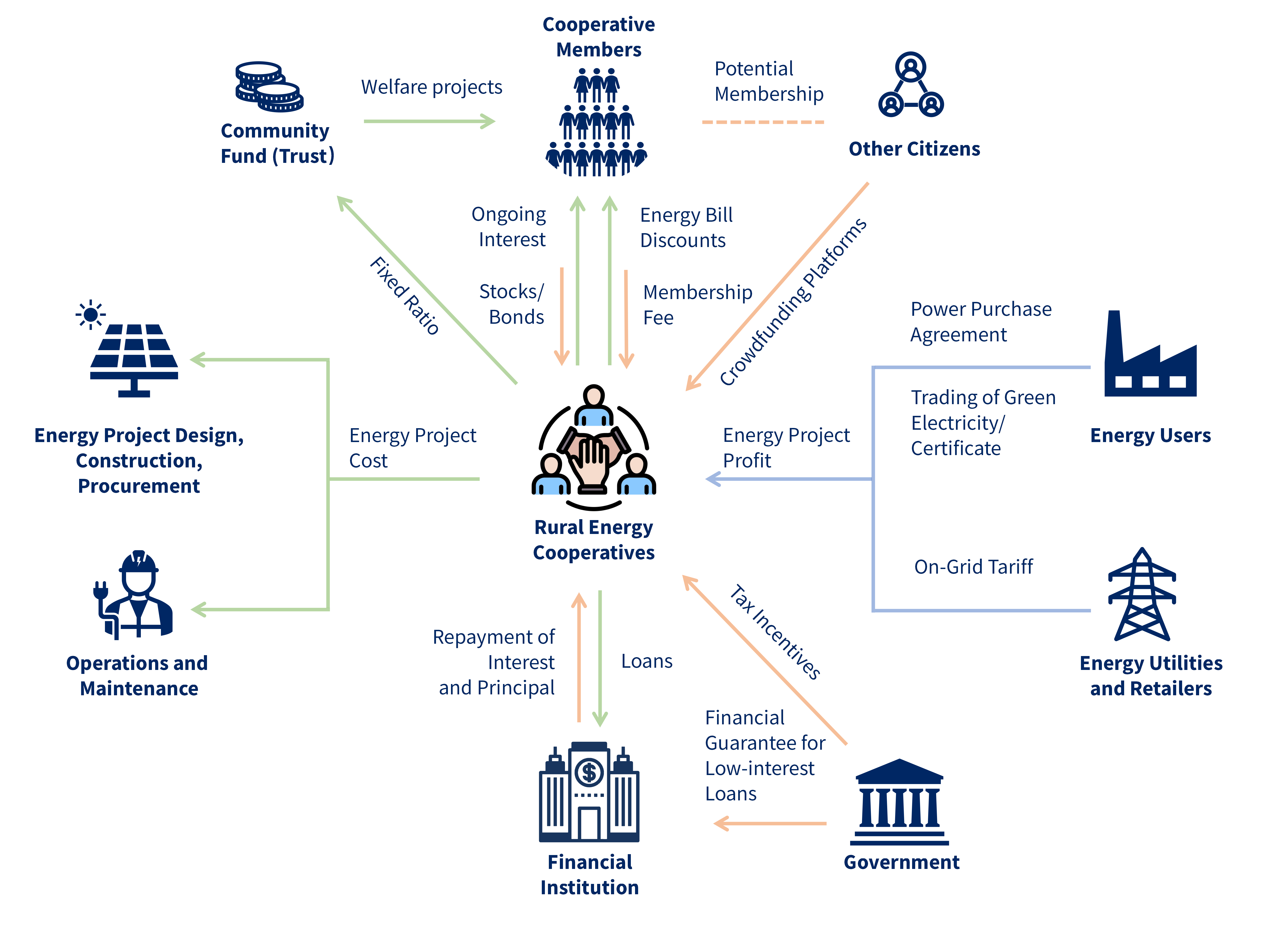 Community energy models, exemplified by rural energy cooperatives, are playing a key role in accelerating the clean energy transition across many countries. In anticipation of the upcoming 2025 International Year of Cooperatives, this report explores the role of cooperatives as a collaborative model and an emerging player in the energy market. Based on global case studies, it provides an overview of rural energy cooperatives, illustrating various financing, profit, and benefit-distribution models, assessing their environmental, economic, and social impacts, and summarizing current trends and challenges facing their development.