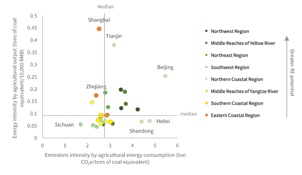 The index further shows that many of the relatively less well-off rural areas in China tend to feature richer wind, solar, and agricultural biomass resources along with higher food output, higher agricultural energy consumption, and higher emissions intensity (Fig. 3). Therefore, it is worth exploring the coupling of agricultural energy efficiency, electrification, and clean energy technologies with local renewable energy development, which could help facilitate the transition of both agri-food systems and energy systems while also improving agricultural modernization and production efficiency. Admittedly, special attention should be paid to the cost affordability and overall economics, particularly for those less well-off areas. Solutions must be tailored to local agricultural structure and other specific conditions.