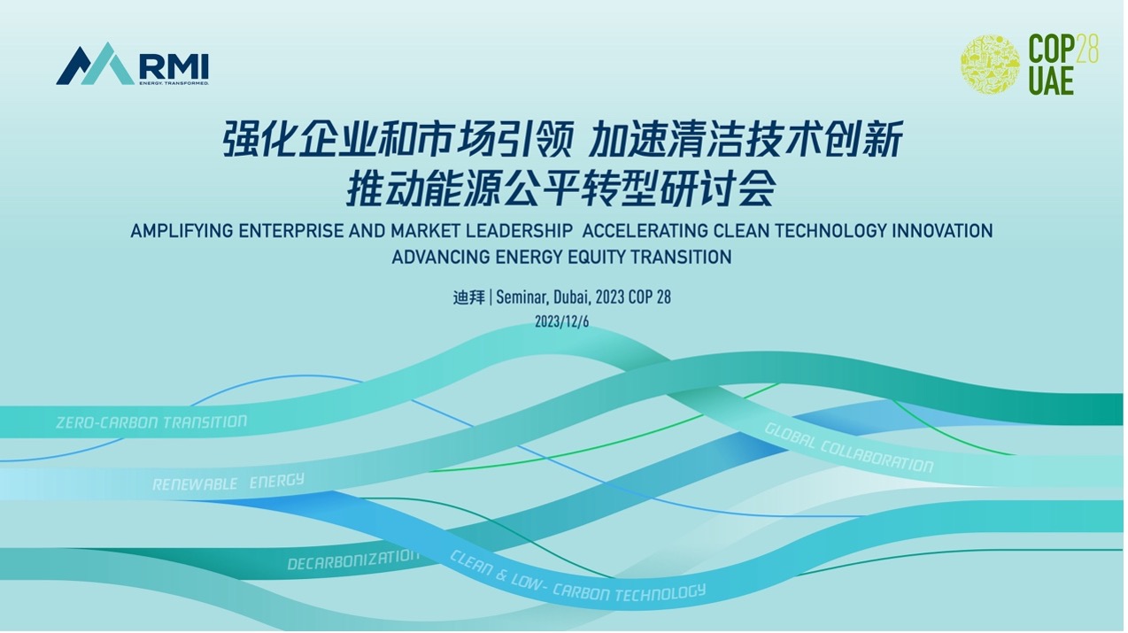 Dubai – December 6, 2023, At the 28th annual Conference of the Parties (COP28), RMI hosted “Amplifying Enterprise and Market Leadership, Accelerating Clean Technology Innovation and Advancing Energy Equity Transition Seminar” at the China Center, Dubai Expo City. Leaders, experts and representatives from governments, industries, enterprises and international organizations attended the seminar and jointly discussed strategies and actions to address climate change, focusing on enterprises and markets, technological innovation, and equitable transition.