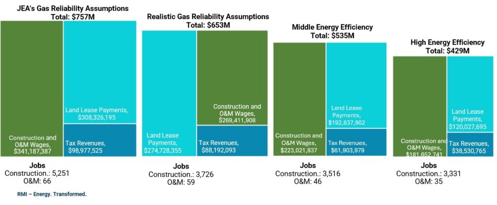 - JEA recently announced its decision to pursue building a new gas plant, and its new projected capital costs are over 139% more expensive than its 2023 cost estimate and 2% higher than the “high-cost” gas plant scenarios RMI analyzed.