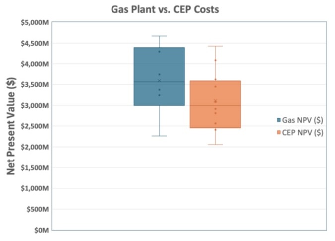 - When excluding these low capital cost assumptions for the gas plants, over 80% of CEP scenarios and sensitivities are less expensive than the gas plant scenarios and sensitivities.